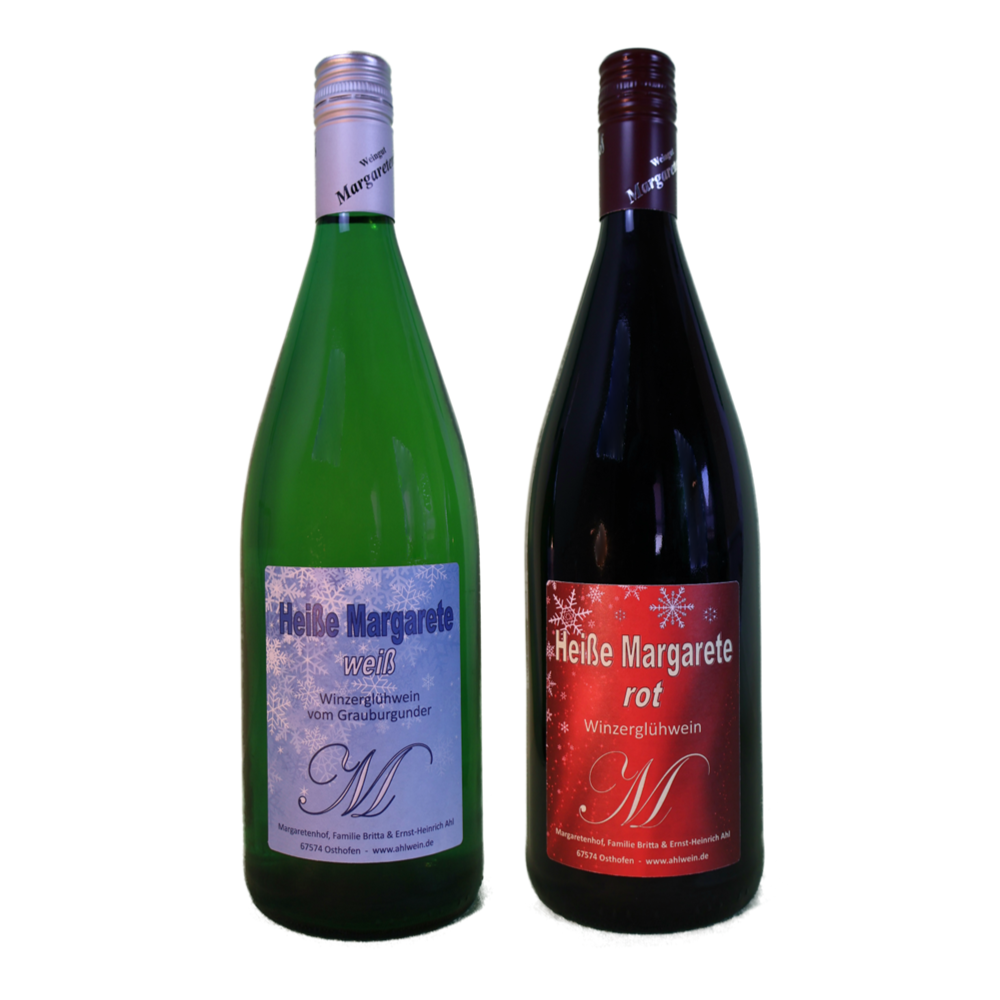 und 3 Flaschen Heiße Margarete Winzerglühwein weiß, hergestellt von Grauburgunder.